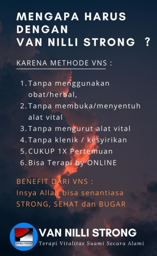 Van Nilli Strong hadir untuk membantu Anda meraih kesehatan tubuh dan jiwa secara menyeluruh . Terapi berkualitas dapat diperoleh siapa pun di seluruh Jawa Tengah tanpa harus meninggalkan daerahnya . Rasakan segera perubahan positif dari dalam tubuh dengan terapi alami, aman, dan menyeluruh Van Nilli Strong