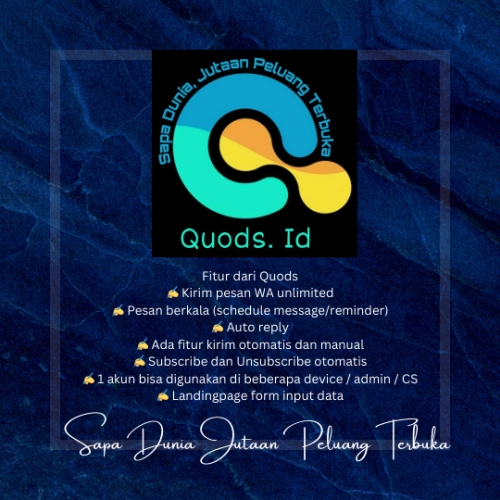 Fitur-fitur canggih dan inovatif dari Quods.id CRM WA Marketing memberikan kemudahan dalam meningkatkan efektivitas pemasaran Anda melalui WhatsApp. Menggunakan teknologi ini untuk memperkuat ikatan dengan pelanggan Anda adalah kunci sukses dalam usaha Anda.