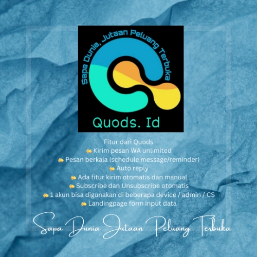 Dengan Quods.id, pesan WhatsApp sepuasnya dapat Anda kirimkan kepada pelanggan. Hal ini menunjang Anda dalam menjaga kontak dengan konsumen Anda tanpa pembatasan.