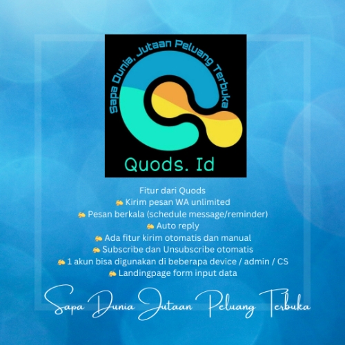 Fitur-fitur inovatif dan canggih yang ditawarkan oleh Quods.id CRM WA Marketing membuatnya menjadi pilihan yang ideal untuk meningkatkan kinerja pemasaran Anda melalui WhatsApp. Pemanfaatan teknologi ini untuk memperkuat relasi dengan pelanggan Anda adalah kunci sukses dalam bisnis Anda.