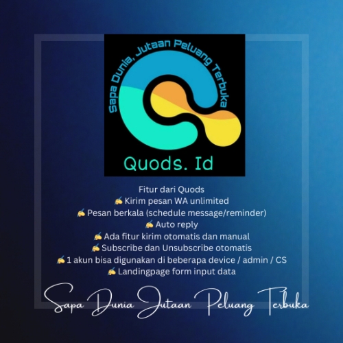 Fitur-fitur Quods.id CRM WA Marketing dirancang untuk mengoptimalkan strategi pemasaran Anda via WhatsApp. Ini adalah fitur-fitur andalan dari Quods.id: