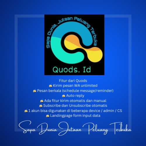 Fitur-fitur inovatif dan canggih yang dimiliki Quods.id CRM WA Marketing menjadikannya pilihan yang optimal untuk memperbaiki kinerja pemasaran Anda melalui WhatsApp. Manfaatkan teknologi ini untuk memperkuat ikatan dengan pelanggan Anda dan mencapai kesuksesan dalam usaha Anda.