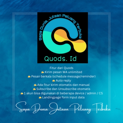 Fitur-fitur canggih dan inovatif dari Quods.id CRM WA Marketing memberikan kemudahan dalam meningkatkan efektivitas kampanye pemasaran Anda melalui WhatsApp. Gunakan teknologi ini untuk memperkuat jalinan dengan pelanggan Anda dan meraih sukses dalam bisnis Anda.